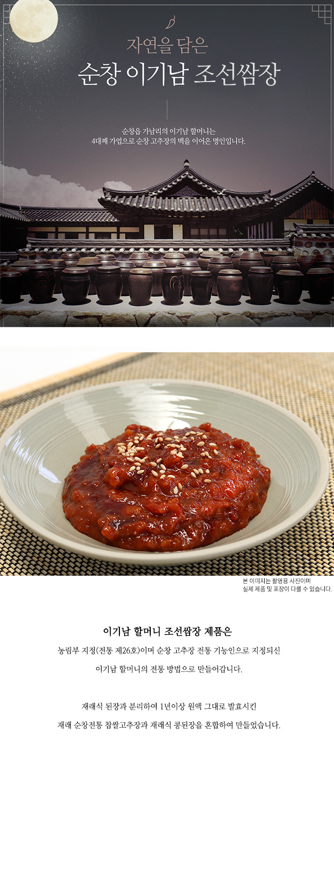 Àç·¡½Ä ½ÓÀåÀº °¢ °¡Á¤¿¡¼­ ÀÚ°¡ Á¦Á¶Çؼ­ ÀÌ¿ëÇϱ⠶§¹®¿¡ °¢ÀÚÀÇ ±âÈ£³ª ¼Ø¾¾¿¡ µû¶ó ¸ÀÀÌ ´Ù¸£Áö¸¸, ¸À°ú ǰÁúÀÌ Å¹¿ùÇϱâ·Î ¼Ò¹®³­ ¼øÃ¢ÀüÅë Âý½Ò°íÃßÀå°ú Àç·¡½Ä ÄáµÈÀåÀ» È¥ÇÕÇÏ¿© ¸¸µé¾úÀ¸¹Ç·Î ½ÃÁß¿¡¼­ ÆÇ¸ÅµÇ°í ÀÖ´Â °Íº¸´Ù ¸ÅÄÞÇϸ鼭 ±íÀº ¸ÀÀ» ³À´Ï´Ù.