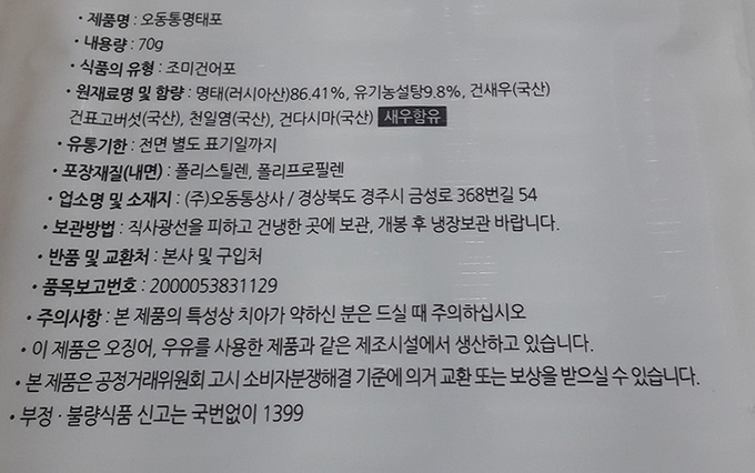 »ó ǰ ¸í : ¡Ú¿Àµ¿Åë ¸íÅÂÆ÷ 70g