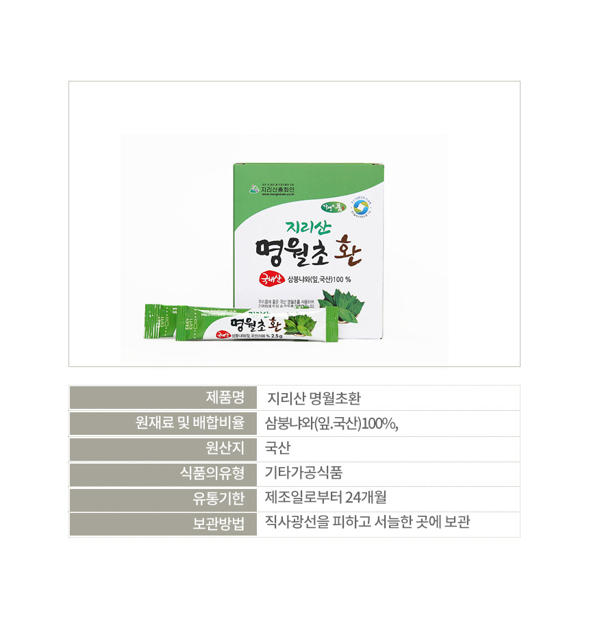 »ó ǰ ¸í : Áö¸®»ê ¸í¿ùÃÊȯ 2.5g*60Æ÷(°£ÆíÇÑ ½ºÆ½Æ÷Àå) (À̸í : »ïºØ³Ä¿Í)